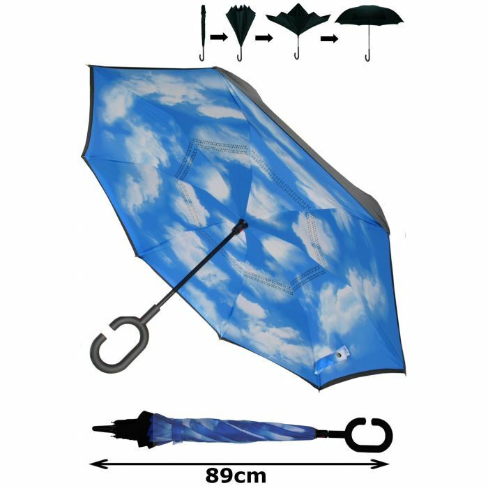 2) Clever "Inside Out" reverse design - Dash inside or in the car and when you close the umbrella the wet canopy goes inside! You and your surroundings stay dry.
